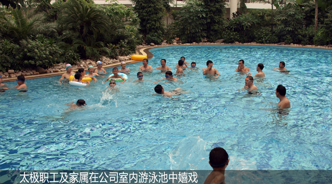“上班努力工作,下班享受生活”,太極公司非常重視員工生活,視員工為親人,為他們提供一流的工作環(huán)境,高標(biāo)準(zhǔn)的員工餐廳,舒適的公寓,休閑的運動場所,讓員工時刻感受到太極大家庭的溫暖。2006年太極公司在緊鄰廠區(qū)另購?fù)恋?0畝,投資8000余萬建成了約6萬平米的職工單身公寓樓,每人50平米房間,統(tǒng)一配置電視、網(wǎng)絡(luò)、洗浴間、床柜、空調(diào)、暖氣、桌椅一應(yīng)俱全。生活區(qū)還配備了3D電影院、超市、兒童樂園、衛(wèi)生所、棋牌室、健身房、乒乓球室、臺球室、羽毛球館、籃球場、露天健身器械等,并不斷舉辦各種文化體育活動豐富職工生活。